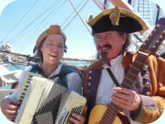 Listen and sing-along with Kaptain Kula and Dangerous Diane, straight from Disneyland, playing fun pirate music and sea-shanties.